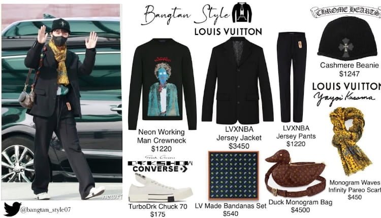 اعتمد نامجون مظهر رياضي للغاية مع مع حذاء Vintage Runner . و قبعة Louis Vuitton x Nigo LV Squared لمظهر أنيق .
