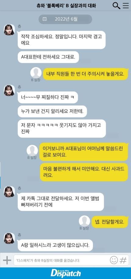 و هذه هي الرسائل التي أرسلها Chuu إلى نفس الموظف في يونيو 2022.