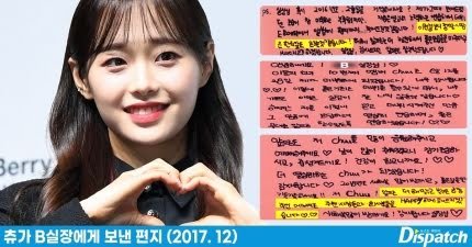 بدأ نزاع تشو مع الشركة بسبب المال. يتضح هذا عند قراءة كتابتها ، “أنتم لا تعطوني المال يا رفاق ، أنتم لا تعطوني محاسبة شفافة ~.” للسياق ، شارك الموظف B في اختيار Chuu في عام 2017.