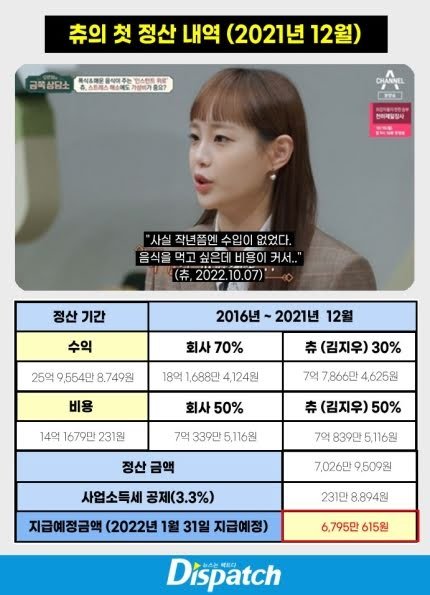 تشوو: تأخر تصوير الفيديو الموسيقي ، لذلك تلقيت 50.0 مليون وون كوري (حوالي 38200 دولار أمريكي) كتعويض . ومع ذلك ، لم أطلب التعويض عن هذه المشكلة فقط. كانت هناك العديد من مشاكل الجدولة. لهذا السبب طالبت بالرد كتحذير.