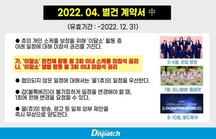 قدمت BlockBerry Creative سبب الصدع. هاجمت تشوو ضعف الوكالة. اكتسبت اليد العليا (7: 3) من خلال إعادة التفاوض على عقدها . لم تعد BlockBerry Creative مسيطرة ، وكان لدى Chuu القدرة على اتخاذ القرار بنفسها.