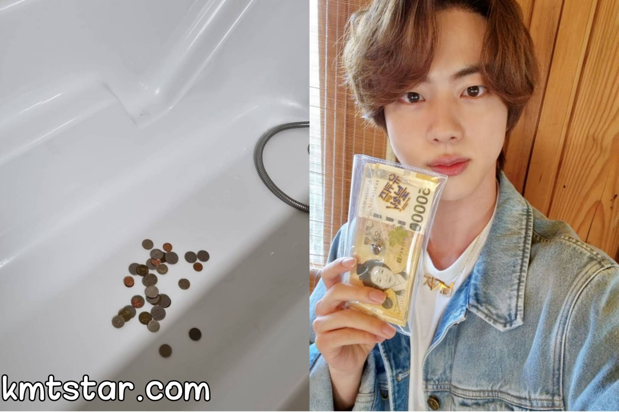 ” من حمام العملات الورقية لجين إلى حمام العملات النقدية لشقيقه😃😃😃 ، إخوة كيم بارعون جدا . “