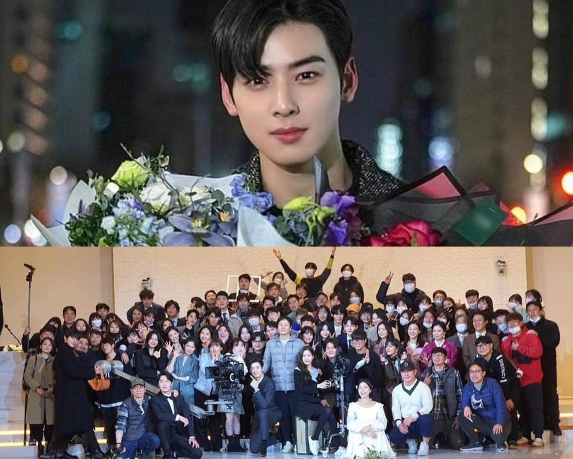 | صورة من الحساب الرسمي للممثل تشا أوون وو لفريق عمل دراما جمال حقيقي |