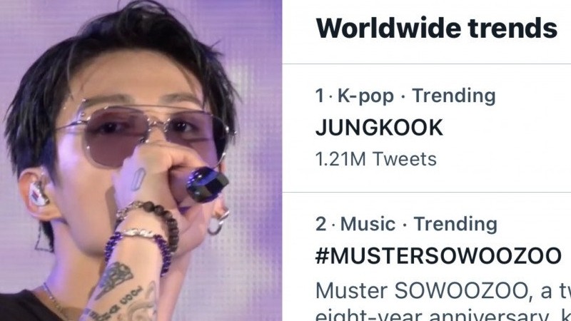 #WorldwideItBoy #Jungkook trends at #1 on Twitter Worldwide, on Twipple Japan and in the US at the start of #BTSMUSTERSOWOOZOO and was still trending at #2 Worldwide behind #MUSTERSOWOOZOO at the end of the concert with 1.75m tweets, the Most Mentioned BTS member!💪💥1️⃣🌎🇯🇵🇺🇸👑💜 pic.twitter.com/1JpqegaBBv
