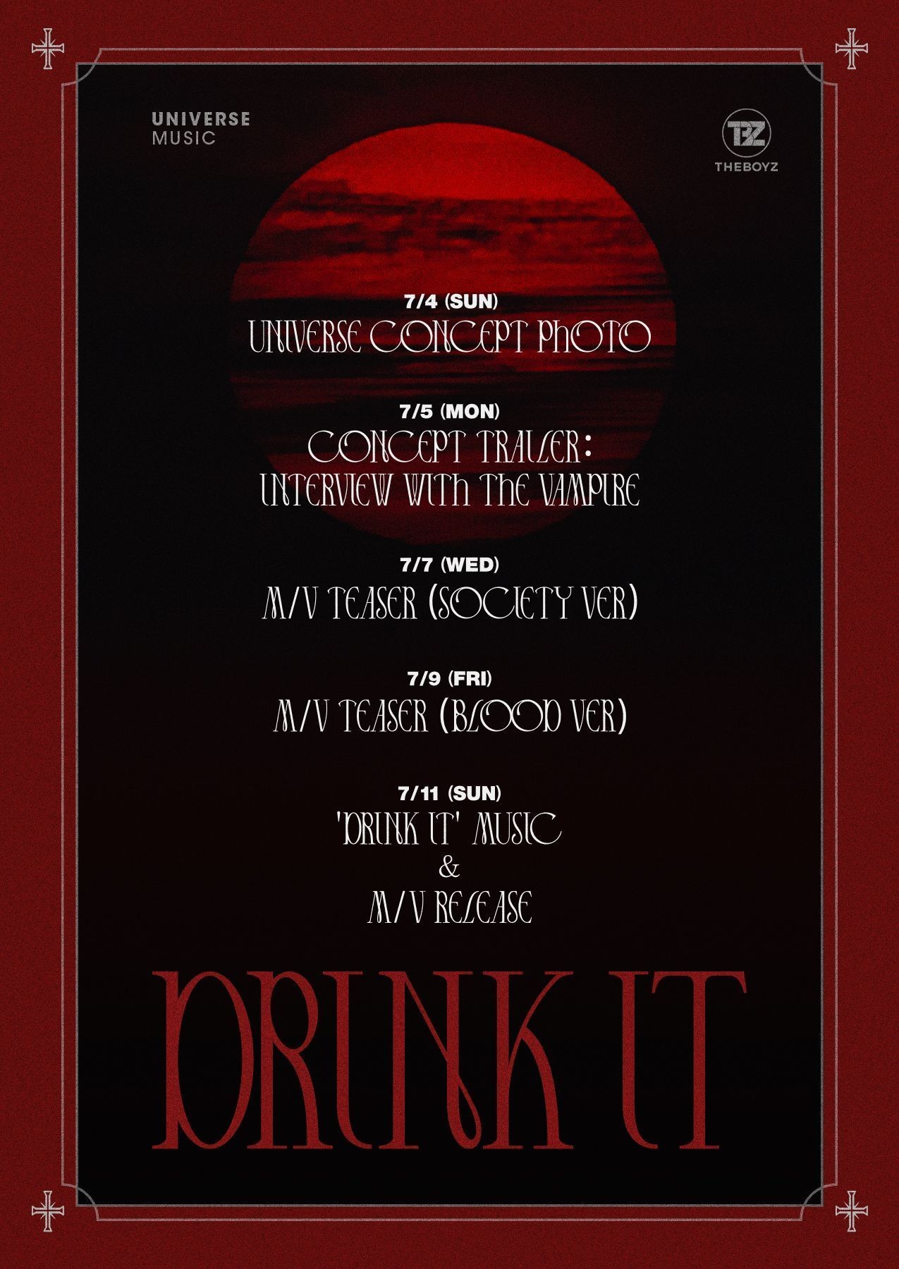 ستصدر The BOYZ الأغنية المنفردة الرقمية “Drink It” لمنصة K-pop UNIVERSE في 11 يوليو في الساعة 6 مساءً بتوقيت كوريا . سيتم الكشف عن مقطع فيديو موسيقي للمسار في نفس الوقت.